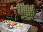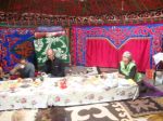While having dinner in the hosts yurt a old pile of bedding began to moan and it was our hosts father who was very ill, with heart problems. Between use we have a variety of prescription drugs painkillers, antibiotics ect. We offered them all but they refused and said that maybe he goes to hospital tomorrow or maybe the next day. The hospital was at Biskek about 300kl away. I did seem that he either got better and got up, or he stayed there and died. The host seemed accepting of this situation. By our standards it seemed harsh but the Kyrgys seemed pragmatic about it. It put a dampener on the evening.