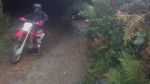 The concrete ford was brimming but caught nobody out. Two equestrian ladies thanked us for stopping and killing the motors as they passed while Bombx3 teased some bracken from around his brake disc. I found the gate onto the common had been, presumably, blown open and tied it after us so the sheep would not go wandering. Brownie was quick to rescue Stevo from under his KLX after the badger tipped him off it.