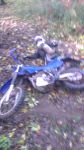Started at mine with a bacon and egg sandwich Got going by 9.15 after tea and yapping Took in a few lanes till we got to the river Taw at north tawton, I know this crossing very well and the river was in full flow and I know there is a deep washout in the middle, so we decided to PUSH the bikes over the footbridge and this is what happened on the decent.....