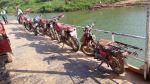 Day 4 - Kampong Cham - Kampong Chnang 170 km, lots of dust, 60 km tarmac, 3 km ferry Breakfast at the French cafe, then a brief trip to the hospital to tend to Andy's blistered foot. Clean up and a plaster for $5 was reasonable value, but we need another solution for Andy's irritating boot. As the ward beds are open to the street, along with the fumes and heat, I wouldn't really want to be a long-term patient in there. Set off over the long bridge over the Mekong, then followed the river south through many small villages with children waving and calling after us. Started seeing a few goats for the first time. A mix of dusty roads, single track and tarmac. We kept detouring down to the edge of the Mekong, following narrow dusty paths along the top of the cliff past plantations of banana, sweetcorn, cashew, cabbages and other crops. Very difficult to follow from the back, as the dust completely obscured the path. Andy's front wheel hit a cow which jumped out of the hedge in front of him, but luckily he managed to stay upright. Paeng was almost taken out big-time by a truck pulling blindly out in front of him. We stopped to catch a ferry back over the river, then continued following the river south before catching another (more rickety) ferry back across. Mel decided to spin his bike around on the deck by sliding the back wheel, but managed to drop it instead in front of all the passengers. Of course we didn't mock him for that . More dusty tracks followed, where a piece of wood jumped up and took my sidestand spring off, causing the engine to cut out. Eventually managed to find and replace the spring and carry on, but I think the others were a bit worried when I was so far behind them. Crossed a couple of very dodgy wooden bridges, with missing/loose planks which looked as though they would give way at any time. We finished with some more road work and got to our hotel just as it was getting dark. Paeng had arranged for a larger pair of boots to be at the hotel for Andy to borrow, so hopefully his blister will last the next couple of days. Something I find strange is that if you are going to want beer at these smaller hotels, you need to phone ahead for them to chill some ready for you. Seems that most guests don't drink it at the hotels? What sort of country is this?