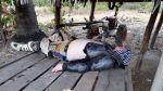 Day 1 - Seim Reap -> Koh Ker 170 km, approx 15-20 km tarmac Stopped to see how normal farming Cambodians live, in wooden houses raised off the ground, allowing shelter and storage underneath, as well as protection from flood water. We sheltered from the rain under one house, with the family (8 kids). They were happy to let us in. They have had their own well for only 4 years due to a charity project, prior to which all water came from the river. Due to a lot of slash and burn and illegal logging, rivers are drying up, and land becoming infertile. We rode through large areas still smouldering, and many people carrying out this illegal destruction.