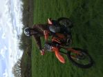 The lad and I were out riding today and my Dad turned up. While we stopped for a brew he stood up on the KTM peg while it was on the stand (OMG) and with a bit of help got on......