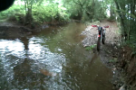 Had an hour so went back this morning hears some pic's from the river end looks good I walked in the river it was over knee deep in 3-4 pools an so I decided not to take the Montesa in as she is low to the top of the air box only around 2 feet. I would think twice on my TTR if I was on me tod as well its a long way to pull a flooded bike back to the road on your own if you drop it. For those wanting to give it pass the old cut onto the B path is now blocked as the level of the cut in the trees has made a 4-5 foot high bank to get the bike up an over. so now hopping the horse kick board each end is the only way to go round not that I would do that on a trials bike no siree not me. So if the waters clear an not up an you are not on your tod looks safe to ride but WATCH THE DEEP POOLS