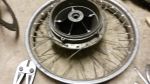 Next up were the wheels. For some reason BSA used a 20" non standard front wheel the only option these days is to go up in size to a standard 21", to help counter this increase I also went for 1" longer Hagon rear shocks. The front brake was originally a 6" single leading shoe brake for the trail models the UK road version had a 8" twin leader laced to an 18" rim. I had one of the larger brakes so took that along with the rear hub just up the road for some top quality stainless steel rims with stainless spokes from the Devon Rim company.