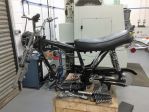 The frame had been repainted many years ago and was still in very good condition so it was a case of fitting the new steering head bearings outer races into it and giving the oil in frame a clean inside. The forks and swinging arm all fitted easily along with the reconditioned tail light assembly, grabrail and new old stock rear mudguard and the recovered seat tried for size.
