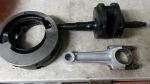 The crankshaft arrangement on these bikes is unusual in that it has a 1 piece forged steel crank with a plain big end bearing with bolt on cast iron flywheels and a high tensile duraluminium con rod with steel end cap.