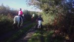 FredE, NickJ and Mattyboy were briefed to make sure the man behind knows where to turn and warned how to approach the perpendicular steps placed by the water board at the entrance to Conitor lane before we set off. The muddy patch on the dog leg after Stubbins cross has been tamed but not eradicated by repairs. A large white van made me swing around wide at Chercombe bridge to begin the short rocky climb, not the first white van detour of the day. The giant lego bricks have been scattered by the 4x4s playing off-road before Holbeam lanes ford and the long deep puddles are shallower these days. A farmers green quad shot out onto the lane past Otter court as I approached his gateway and I slithered to a halt next to him and we exchanged pleasantries. Trevor and wife going the other way paused to say hello a little further on and we continued when the quad caught up with us again. Descending Colesworthy cross lane I saw ahead of us over the hedges the first of many horse riders whose paths we were to cross during the ride. We pulled off the track and killed the engines and were thanked by the grateful riders as they passed. On our way to Furzeleigh lane we puttered slowly past a rider who had lead his steed and another on a halter into a gateway, then leaned our bikes into the hedge for another two to pass a bit further along.