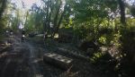 Descending Johnny Cann's Walk I used the ramp like quality of the first diagonal drainage channel to demonstrate the aerodynamic qualities of the CRM but my reverie was interrupted by a dog walker further along so I did not avail myself of the similar infrastructure lower down the hill. The field below the lane was empty of deer but there were grins on faces behind me. Knowle hill byway looked smooth thanks to the deep covering of autumn leaves hiding even the largest of the many loose rocks littering the lane below the leaf litter and I felt the suspension discover a few on the way down but the CRM was unruffled and thanks to the deep plush seat so was I. It took willpower not to splash the walkers who stood to the side of the Old Manaton road puddles where we met as they gathered their many dogs to make way for us but the temptation was resisted. We paused to take in the scenery at the bridge and chatted to the ramblers again, and they waved another hello as we passed them on the hairpin bend halfway up.