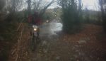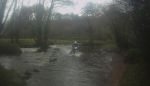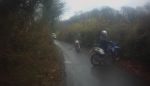 The ford across the Walla brook was deep enough to hide all the stepping stones only hinted at by the white water going over them. John had a moment or two and looked like he was using his legs as oars while crossing, but no trout were tickled.A lady leading a horse thanked us for stopping our engines as we passed the farm before several miles of picturesque tarmac made slightly more interesting by a small black calf suddenly racing along the tarmac next to for a while. The dog raised its head as if to say hello at Broadgates but did not get up. If you let it it will throw branches or balls under your bike to try getting you to play with it if you linger. I bumped the CRM over the log in the gateway and other took the safe route around. It is nice to see a black and white county road sign on the gate at the bottom of the Lych way road at East Shallowford where I made a pigs ear of dismounting for the top gate and had to pick the bike up again. No drama crossing the concrete ford at Ponsworthy. The gate leading into the SSSI at Blackadon was open and we coasted down the off camber slope above the steep wooded slope before limboing under the fallen holly branch midway along the road at the bottom of the hill. The car parks at Spitchwick remain closed but a small space is marked for disabled vehicles. More prickly gorse forced a detour as we crossed Green down while the younger calves ran about watched by their more placid parents. The rocky climb into Holne is great fun on a CRM in third gear hanging on tight. Summerhill cross lanes undulating surface preceded Bowden hill's muddy ruts which brought us into the centre of Ashburton. Visibility is poor exiting the short gravelly road below Pitley farm but we met no traffic on Gale road's muddy long deep puddles. Splashing through the puddle in the dip then squelching through the off camber mud to Goodstone preceded a short unrecorded road from Rentor view to Gale hill and we rode Holbeam lane at the second attempt. We splashed through the picturesque ford