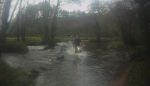 A hedge trimming tractor gave me cause to re route for a second time as I did not want wait for him only to risk a puncture on the lane freshly littered with branched flailed out of the hedge so we only used the short section the byway at North Bovey which serves as the heavy goods vehicle access route for those too wide to squeeze over Fairbrook bridge. Seeing water flowing over all of the stepping stones gave me pause but we splashed through and all riders were grinning atop their steaming steeds moments later.