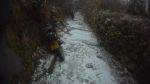 Between Pitton and Widicombe we slithered to a halt on an icy slope but tacking across the road and seeking grip in the gutter got us as far as Blackaton cottage lane. Or at least as far as the ice covered boulder field that precedes the step at the gate. Water that usually flows under and around the boulders had frozen then flowed over the ice, and frozen and so on building up a thick layer of glassy clear ice affording no grip to tyres or the soles of boots. Trevor realised this a moment before me.