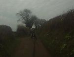 Stopping to change the camera battery at the top of Frittiscombe lane took long enough for Fred to come back looking for me and a few miles up the road after Squibb lane we caught up with the others in time to ride in each others wash along the flooded tarmac leading to Battle ford lane. The overlay speculates the lovely rocky slatey climb after the ford may be slippery in winter and I can confirm this. After debating riding over the freshly ploughed soil at Allington where both hedges have been grubbed out we instead descended a badly cut up Green lane before slipping and sliding along the delightful Alston wash lane. Skipping the overgrown road to Whitestone cross we dropped down steeply through Hansel. Trevor was sent back down the steep cork screw climb and helped Fred regain lost momentum with a push. Fred's son had helpfully cleaned and polished his bike and made a lovely job of shining up both tyres tread and all which looked brand new at the start and made me wince at the sight of such shiny polished rubber which looked completely lacking in any potential to grip anything..