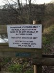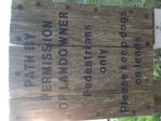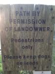 The signage shows this as a permissive path (courtesy of the land owner) and announces closures during the shooting season.