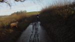 The power company worker whom we met on 079 was kind enough to reverse quite a way till he could back into a gateway to let us pass. The overlay for 202-091 says it is mostly tarmac but may need amending as it is mostly mud now. Half a dozen sheep loose in the road near the farm made an interesting diversion as four wisely chose a wide gateway, one unwisely chose to try running through the gate opposite, causing a clang which made me wince, and one, the clever one, ran away in front of us.