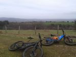 Brownie & I went out to play in the afternoon drizzle and slithered along Well covert lane's muddy patches passing the footbridge and ford linking it to C-088. The continuation of C-087 crosses the end of 192-202 and we glanced sideways as we passed by at the rocky descent we were both looking forward to later on. At the top of 192-168 we met a lone trail rider out on a Nobby No Mates run and caught up with Jonzy who recognized us as the e-bike crew and we chatted before