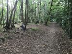 Two ebikers passed at the wide section beside the field which used to have the giants chair and warned of the overgrowth laying in wait for me ahead which was kind of them, but my fore arms still looked like I had fought a fight with a cat with several red streaks by the time I reached the car. Enchantingly beautiful but treacherous dappled golden afternoon sunlight filtered through the woodland glade above and beside the loose rock strewn root infested bridleway semi illuminating the deep hollow way as I rolled silently but smoothly showing my suspension works. I timed my passing through the gate at Jay's grave perfectly and a mountain bike rider who had already opened the gate volunteered to also close it and I rolled smoothly through.