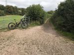 Two ebikers passed at the wide section beside the field which used to have the giants chair and warned of the overgrowth laying in wait for me ahead which was kind of them, but my fore arms still looked like I had fought a fight with a cat with several red streaks by the time I reached the car. Enchantingly beautiful but treacherous dappled golden afternoon sunlight filtered through the woodland glade above and beside the loose rock strewn root infested bridleway semi illuminating the deep hollow way as I rolled silently but smoothly showing my suspension works. I timed my passing through the gate at Jay's grave perfectly and a mountain bike rider who had already opened the gate volunteered to also close it and I rolled smoothly through.