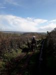 We we worked our way across the ford just down the road and across the common passed the scrap yard, an Alsatian had a go at chasing Libby but she managed to avoid his foaming jaws.  Typically there was a van to squeeze past to continue across the common.  The disgraceful mess continues to grow unfettered, at what point is something going to be done about this flagrant breech of the law, and the pollution of our beautiful countryside.  We headed over to Longlane and stopped to admire the view, my personal botanist pointed out the Devon primroses in the hedgerows.