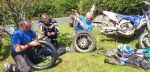 So Nicks first punchure was at Haytor, a thorn, we sent Greg to a farmer friend and he bought back another spare tube, but we had already patched the hole and removed the thorn.