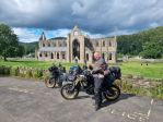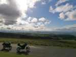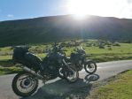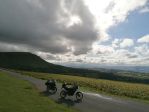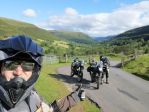 A lovely road lay ahead of us tracking the River Wye towards Tintern Abbey for a quick photo opportunity in the sunshine . The road continued to twist and turn and track the river before we veared off towards Monmouth. After passing through Monmouth we headed to our first scenic pass, Gospel Pass in the Black Mountains. 2/3 of the way along the route we encountered 'Road Closed' signs. Whilst we were stopped looking for an alternative route a lady came out of her house and warned us that the road ahead was closed, "with locked gates apparently" she said and then proceeded to tell us the route around was a LONG way around - either back the way we'd come (about 6 miles) then via Talgarth or towards Heraford, either route being circa 10-15mile detour. So, my decision was to chance our luck and investigate how bad the closed road was, were are after all on adventure bikes and ....... simple transit through an unlocked Harris fence and transiting through a work zone to repair a fallen bank into the valley - with ample space for a vehicle! - and we were through. When we got to the head of the pass, WOW what amazing scener. The pictures really dont do it justice. Simply stunning scenery with the view reaching miles and miles into the distance.