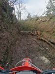 At Beara Down we took 180-027 which was a fast and wide lane taking past the wind turbines. We then turned south as the heavens opened which wasnt pleasant as we were up on high. Still, it was short lived and the sun was back out again before too long. 180-052 at Hartpiece was next and as we entered this lane it looked familiar. It was a lovely challenging lane with some short rocky climbs and some slippery deep mud. At the east exit I immediately recognised it as THIS was the place where Brownie had lost his SatNav. There were no uber deep puddles like there were all those years ago but as Russ arrived next he immediately recognised this location for the same reason. This was where that ride ended all those years ago but this was where it started to get interesting today, and tricky, with the infamous lanes around Snapper. First was a steep climb up 180-053 which I led into but which I screwed up on the first switchback turn, which then halted everyone elses progress. Not ideal as it was a steep and tricky hill start again. Stopping part way up Russ noted that there was a sign at the bottom and he glanced the letters MCC and given the extent of tracks in the lane we were of the thinking it may have been used in the recent Lands End Trial. Onwards and upwards, literally! we did a loop towards Stoke Rivers and the lovely long lane 180-062. We then descended the tricky 180-061 at Snapper this would be tough going up for sure! then 180-060 which was a fantastic little lane, really rocky and testing, that then exited onto the main road that then took us to the uphill steep and very slippery 180-054 which saw Damian off and pushing (and panting come the end). Heading south it was then Clements Lane (180-082) then further south to the infamous Cleave Lane (180-092) one which Ive heard our TRF friend Ian Collins (aka Wacky) mention on numerous occasions - and oh my word it dont disappoint. It was a running river through a bedrock gulley that was a fair challenge as ridden west to east it was uphill. A short breather at the end then we pressed on to 180-101 at Woolstone then 180-084 the gentle lane at Hangmans Hill (180-083). Another easy lane at Kerscott Hill (180-085) before a lovely little lane that was muddy and rocky cutting down through the woods into Swimbridge (180-194). 180-196 was another muddy lane heading steeply down through the wood taking us under the A361 which was still open for our use and seemingly lots of 4x4s despite the construction work to replace the tunnel under the A road. Heading back up the other side of the valley on 180-073 this was a tricky little lane with lots of concrete steps to divert water but these caused a few mishaps kicking out front and rear wheels. Still, no causalities just fun and giggles for Russ who was following up the rear. 180-072 took us to Taddiport then we continued east to West Buckland and the short but sweet 180-074 which was the penultimate lane of the day . before our detour for our final hurrah, Twitchen (180-081) which was only an 8 minute detour further east so definitely worth a look, and it didnt disappoint. Another uphill water-washed and rocky lane that was a great challenge. No real mishaps aside Russ having a wee issue with large wet and greasy log that resulted in a little lay-down, well, it was the end of a long day and we were all tired.