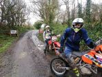 Our route then took us north to Ashelford and 180-022 which was a lovely lane dropping down to a small bridge over a river. As we ascended up the hill after the bridge we hit a gate to a field with Private written on it. Wed gone too far as the route took a right hand turn part way up the hill that wed missed but this was now a restricted byway so we had to ride around (its status probably having changed given the age of this route). Back on track we headed west along the A3123 into Ilfracombe and Langleigh Lane (180-009) which is the South West Coast Path overlooking the Bristol Channel with Lundy Island in the distance. That weather was bright and sunny and the views were spectacular. As we come down off the coast path we passed Lee Bay where there were lots of dog walkers and families playing in the rockpools. Eastercott Lane (180-017) started off very snotty and slippery and we all struggled for traction before finding the firmer ground. We passed a couple of young walkers in the lane who smiled and waved before we exited on the main road into Woolacombe. Heading east again we rode Trimstone lane (180-018) then crossed the A361 into 180-208 Dean Lane which was full of long and fairly deep puddles. Rob Rice (aka Muffy) may recount this lane as this is where - all those years ago he drowned his new KTM Germany Six Days bike. As one of the first fuel injection bikes and with no kick start which is commonplace these days he killed the battery trying to start the bike. I cant remember how we got out of that situation tbh but I dont think it ended well.