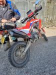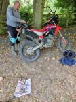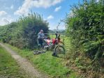 Today he had one puncture, so we removed the tube and changed it the old one was worn through on the side wall, so we carried on for a few more miles and then another punchure , just before we got to Woolacombe, so we limped into the garage there and tried some tyre weld as we had no puncture repair kit, we werent overly happy with the tyre weld but carried on towards the lovely coast path lane at ilfracombe but it wasnt to be it was flat again, we put the remainder of the can in but it still wasnt holding , so as time was against us we decided to head back, only trouble was we were about as far from are start location as we could be 45 minutes dash on main roads but with a flat rear tyre, off we went !! After about five minutes Trev nearly had an off when the back end stepped right out even on a straight so we decided it was a better idea to put his spare front tube in the back, once done off we set again and finally got back to the car park around 5, still a great day and most of the lanes that we did were new to both of us, Im sure well be back to finish the route one day, purple track in pic one is what we did, blue we didnt complete, thanks Trev for another adventure, I recommend BIB mousses