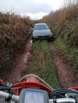 Exiting Harbourneford in a northerly direction on the A381 we next hit Jackmans Lane at Peak Cross with the massive puddle at the entrance. I took a wide berth to enter said puddle only to realise there was a 4x4 practically blocking my exit. Startled by our presence the two young lads - novice 4x4'ers wearing tracksuits and trainers! - attempted to move their vehicle but there was actually plenty of room to get past. We had a friendly exchange then wished the lads - who were self professed novices - a good rest of their day.