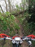 From here it was onwards towards South Brent where after crossing through the underpass under the A38 on Portford Lane the uphill tarmac backroad was really badly eroded along one edge from water erosion, so much so there were traffic cones to warn drivers as they'd definitely lose the side of their car down there! Back under the A38 and heading towards the scrap yard at South Brent and the duo of lanes that led us into South Brent, the first lane of which is becoming really rocky and washed out and the second which had some tricky off-camber slab rock which looked really greasy and slippery so the front brake was left well alone!