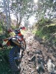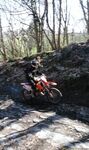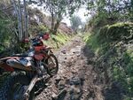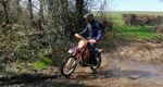Getting closer to base now we passed back through Bovey Tracey then through Liverton and up the lane behind Trago Mills then along Hobeam Lane amd thisnis where the relatively clean bikes got somewhat caked in mud. But that didn't matter cos the lanes behind Debury prison followed shortly after and I think it was worse that the majority of the puddle had dried up cos it was just a bath of icky stucky mud and much throttle was needed to get through it which meant bikes and riders - to an extent - were also now caked in the mud. Great, just when we all thought we'd got away with relatively clean bikes ......U'uh, not today Josephine!!