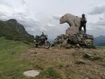 We stopped at a cafe for a late breakfast of Spanish tortilla (omelette) and coffee. We then headed for fuel the plan being a road ride up the mountain pass to see the Granite Bear. Jase bowed out so it was just me, Jules and Kirky.