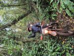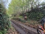 Coming up the lane at No Mans Land (202-029) We needed to get the Silky bandsaw out to despatch a thin tree trunk which was blocking the path.
