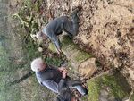 We finished the sawing & clearing in good time only to be greeted by a lady who was a tad unhappy with her husband for driving up the Mutters moor road (the UCR). Where he then turned left in front of the 9th green heading up the bridleway towards the top of Mutters moor, only then he thought this might be wrong I'll try and turn around....Well the team of volunteers pushed & pulled the car out of the bog onto the hard stone section just in front of the 10th Tee.