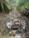 Naturally the material washed down over to the lower end of the lane & out onto the tarmac road at the bottom end (Eastern end) nowt we can do but its happened. We don't think John has got a digger anymore but he might be planning on requiring one in the future. Material can be shifted from the lower section of the lane and restored into or behind the water bars or make new ones with Bulky Bags or rocks..