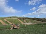 A few green lanes at Lee Mill, South Brent then a zig zag around Redpost and Tally-Ho saw me arrive at the track in perfect time for sign-on at 9am. All our gang were there plus a few other small groups, a few solo riders and an MX race team with a pair of very snazzy looking, spanking new Triumph MX bikes who were there for practice .... and who obviously knew Dave Thorpe quite well as they were assisting the event.